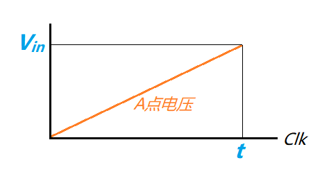 采样开始时,积分器开始积分,同时计数器开始对输入的时钟信号 Clk 计数,假设该时钟频率为 f,积分电流为 Vref/R,经过时间 t 后 A 点电压超过输入信号的电压值,比较器输出从 1 跳变至 0,计数器停止计数,得到计数值 k,通过下方公式计算得到输入电压。