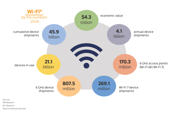 图1. Wi-Fi 的经济规模与出货量统计(图片来源https://www.wi-fi.org)