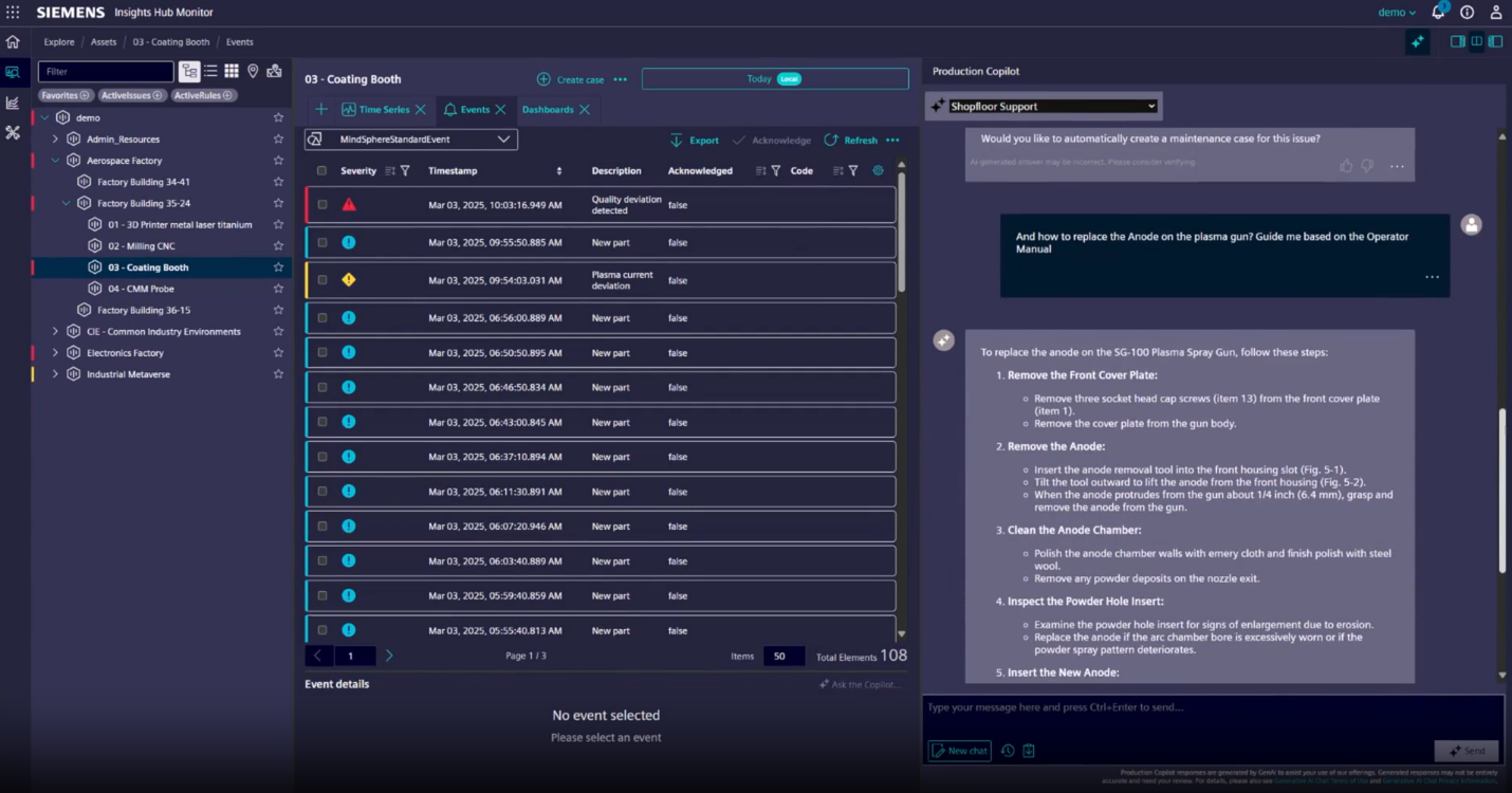 西门子 Insights hub 中的 Production Copilot 提供清晰的操作员指导,