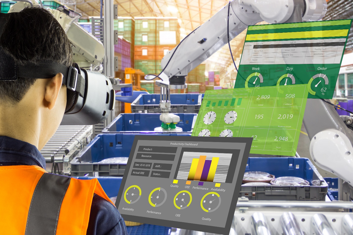 车间工人通过虚拟现实技术加速机器人培训。(图片来源:Poobest / Adobe Stock)