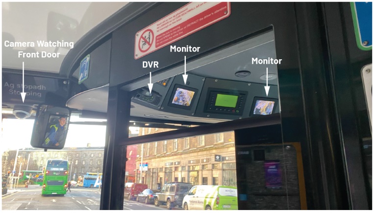 图3.公交车车载安防系统示例,展示了监控后门的摄像头。