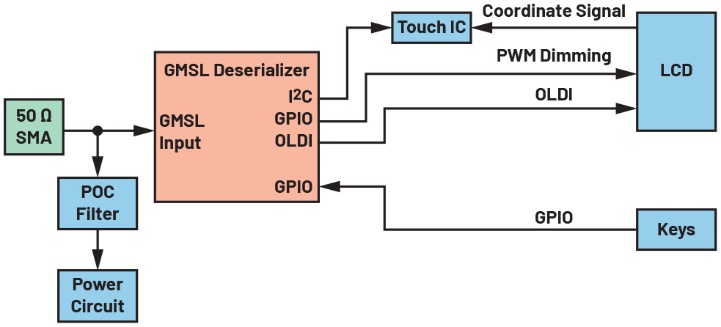 从图13和图15可见,GMSL SERDES的视频接口和控制接口直接与图像传感器和LCD面板相连,省去了微控制器(MCU)、视频编解码器、RS-485/RS-232收发器及其他连接器。此外,GMSL SERDES解决方案还具备多项优势:更大的视频带宽、超低且确定性的视频延迟、极为简化的硬件设计,而且仅需一根低成本同轴电缆或屏蔽双绞线(STP)就能实现外部连接。