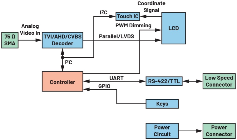 额外的通信接口包括RS-422/TTL和GPIO,分别支持远距离数据传输和通用输入/输出任务。这些特性对于调节显示设置、集成附加功能等交互任务而言至关重要。