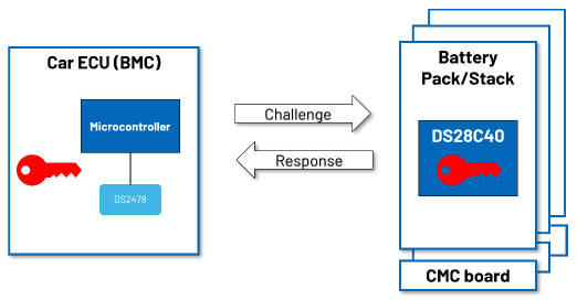 图2.通过质询-响应认证,在不泄露任何秘密信息的情况下对电池进行认证