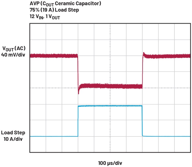 表1.非AVP、AVP和仅使用输出陶瓷电容的AVP之间的负载瞬态响应V p-p比较