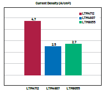 图7.LTM4712、LTM4607和LTM8055之间的电流密度比较