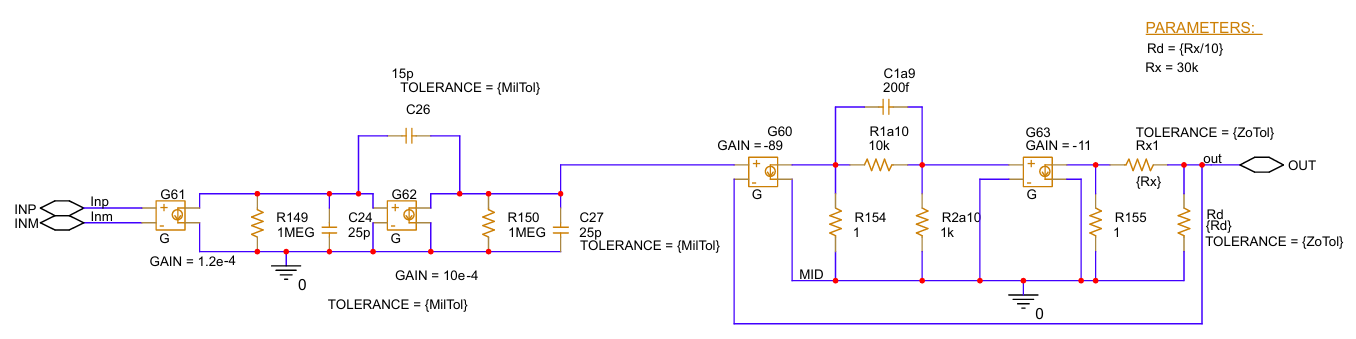 对放大器环路稳定性进行精确建模涉及的两个主要因素是开环增益和开环输出阻抗。德州仪器的标准运算放大器宏模型 Green-Williams-Lis (GWL) 为 2016 年之后发布的所有运算放大器准确表征了这些参数。许多更受欢迎的运算放大器(例如LM2904及其更新版本LM2904B)也具有为其创建的 GWL 宏模型。SPICE 宏模型的库文件包含一个头文件,此文件详细说明了在 SPICE 模型中准确反映的参数。如果对开环增益和开环输出阻抗建模,则模型的稳定性很可能会反映器件的性能。