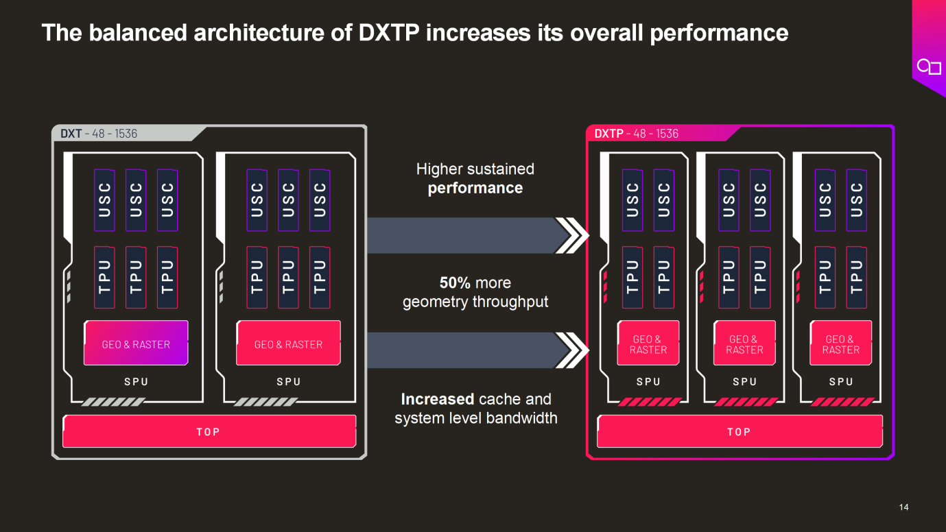Imagination正在帮助客户导入更加灵活的架构。以该公司不久前发布的Imagination DXTP GPU IP为例,它采用了先进的平衡架构,增加了缓存和系统级带宽,实现了更高的持续性能,几何吞吐量提高50%,不仅能够轻松同时处理图形和计算任务,而且其功率效率还较其前序产品提升了20%,为边缘AI提供了理想的GPU平台。DXTP GPU已经被全球知名科技公司采用,用于对AI 多数据类型处理、计算任务加速和本地内存的支持。